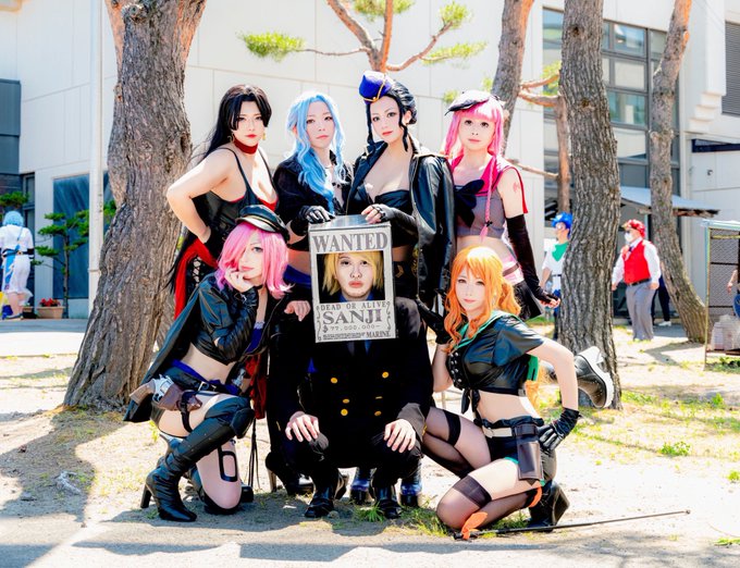 素敵レディーたちに囲まれてもニヤけるの我慢して手配書通りの虚無顔を貫いたレイヤー魂褒めて 🦚🏜@hiragikk_ 💐@ponzu_cos 🍊@iy_ndiood 0️⃣@hkkndn_ao2496 💗🐍@ajiru_pepper 👻@umi_cos_124 🕒mic 📸@ranpaku416 #TMAF2023