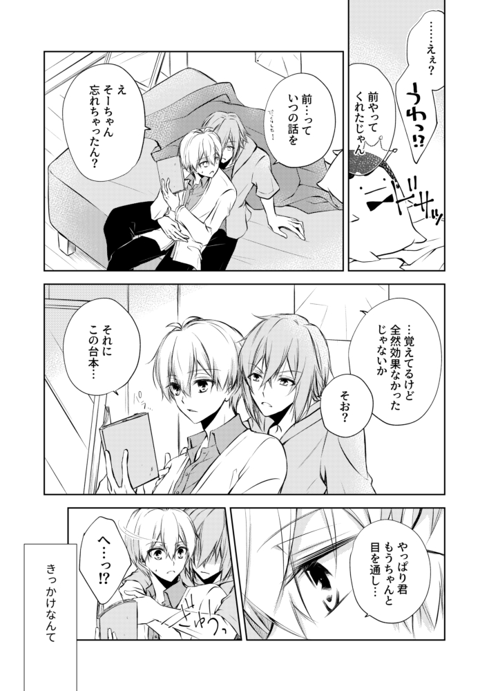 【3/19新刊サンプル】(1/3) 「Sweet Spicy Pudding」 環壮/B5/P32/全年齢 pixiv.net/artworks/10627… 環くんを癒したり笑顔にしたいと思ってぐるぐるしている壮五くんと、壮五くんを大事にしたいと思っている環くんのお話です。みんなには内緒で付き合ってる環壮。 よろしくお願いいたします!