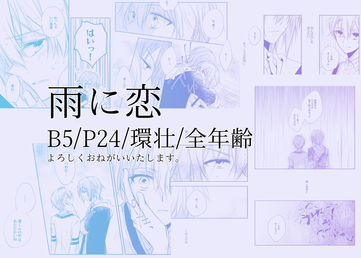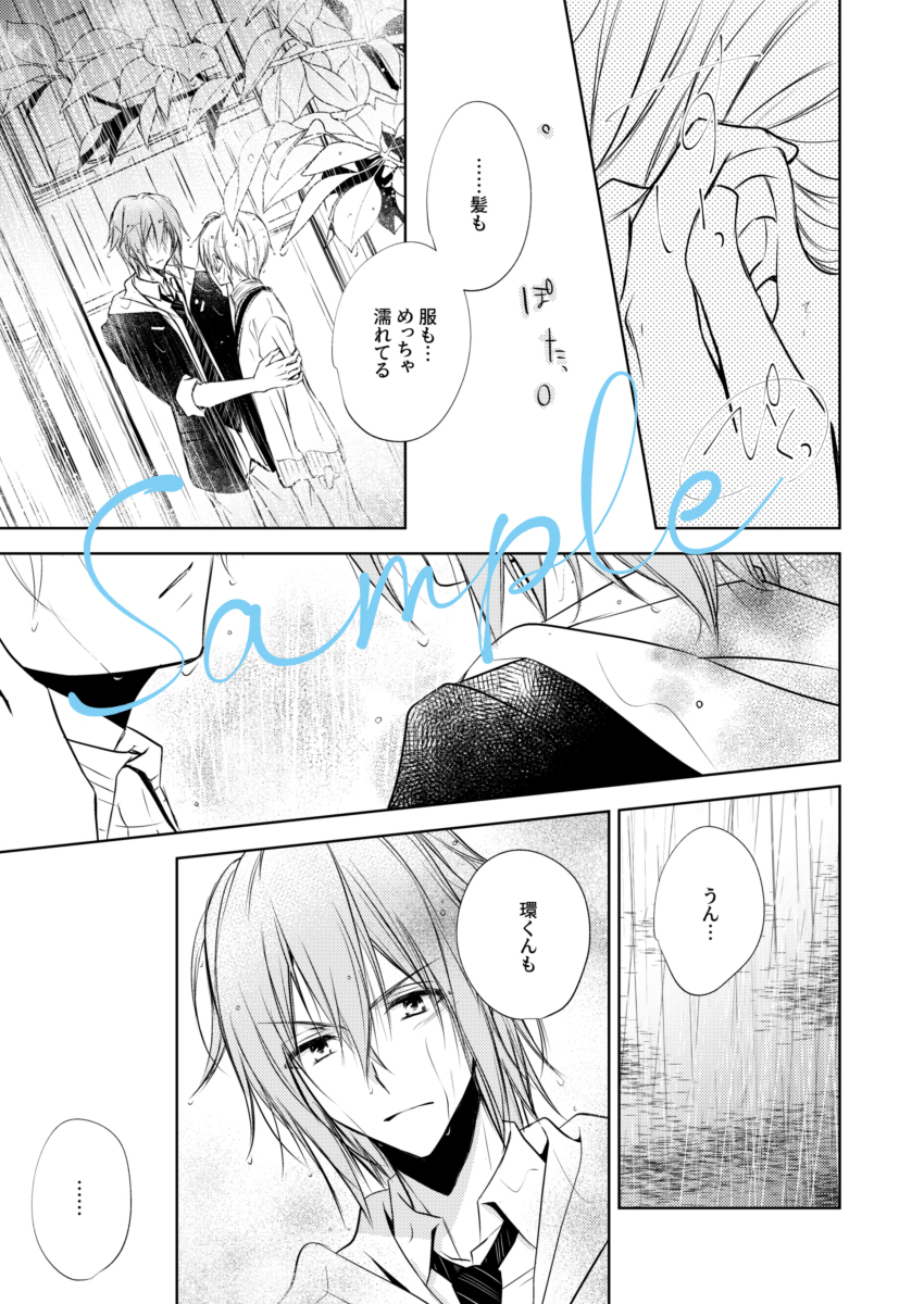 【7/24たまそう。新刊サンプル】 大雨に打たれびしょ濡れのまま公園で雨宿りする環と壮五。周りの景色もみえなくなるほどの冷たい雨の中で、こぼれた願いは…というお話です。pixivはもう少しだけ読めます。よろしくお願いいたします。 「雨に恋」 環壮/B5/P24/全年齢 pixiv.net/artworks/99892…
