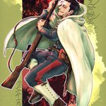 ほんのり本誌仕様です⚠️ おめでとうございます祝福!!スーパートリックスター山猫スナイパーハッピーバースデー!!!🐱 2枚目は汽車かいてたらタロットカードの塔っぽかったんで、加工してみたやつです。 #尾形百之助誕生祭2022 #尾形百之助生誕祭2022