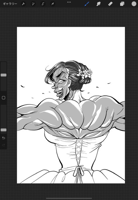 今度は花嫁・範馬勇次郎バージョンを描いております(笑) (結婚式までに範馬勇次郎並に背中バキバキに仕上げてくるって言われたのでww) #ママイケルのお絵描き #イラスト #範馬勇次郎 #ウェディングボード