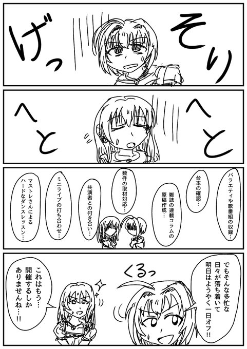 はっちゃけ持田亜里沙とイジられ的場梨沙、そしてツッコミが冴え渡る岡崎泰葉の組み合わせが楽しい営業コミュ『虎を捕らえよ!』をみんな見てくれ…(らくがき) twitter.com/imascg_stage/s…