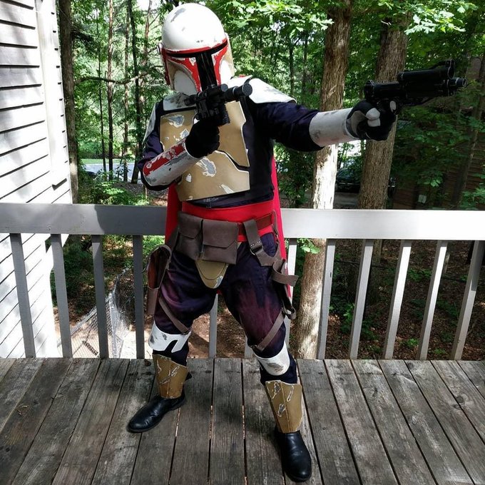 Can't believe the last time I suited up was a year ago. Looking forward to seeing the rest of the @MandoMercs and the #FiraxanClan next year. #mandalorian #themandalorian #starwars #cosplay #bobafett #jangofett #dindjarin #babyyoda