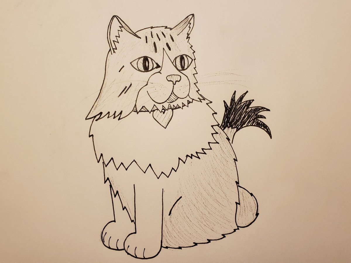 Apparently it's #NationalCatDay so here's my fluffy cat, Whiskers, and a quick doodle of her! She can be a grumpy spoiled princess sometimes, but I still love her 🐈 #Inktober