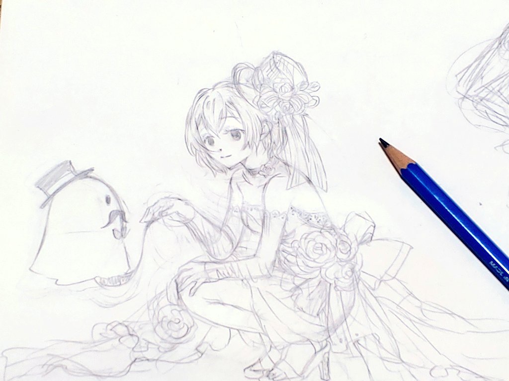 エンジェルトランペット×明城 陽那 #リィンカネ #アナログイラスト 手直し若干入れたので再掲。先程のものにRT&♡ありがとうございました🙏💦