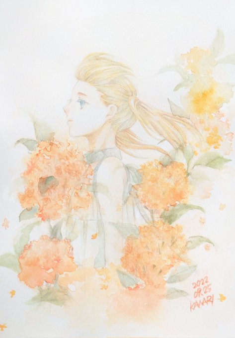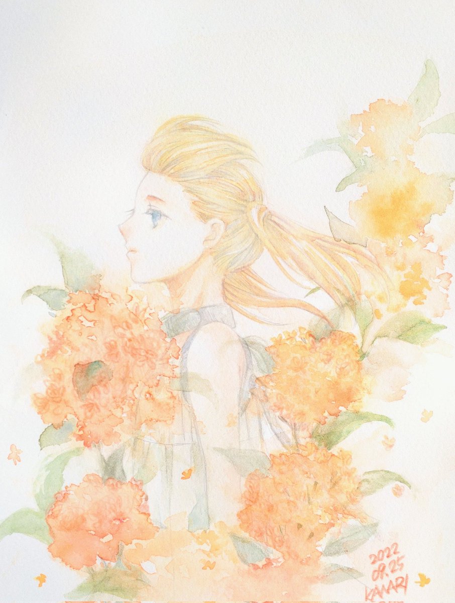 35 121 金木犀とフィオちゃん #リィンカネ #アナログイラスト 22/09/25 08:49