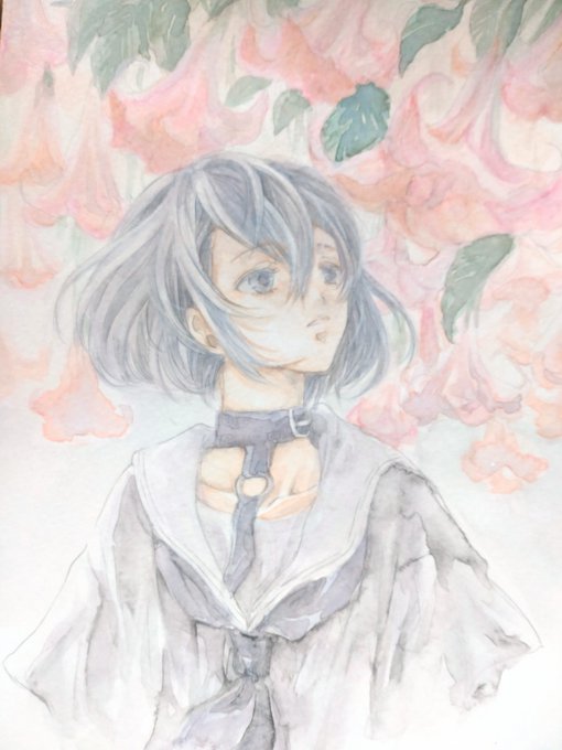 18 61 エンジェルトランペット×明城 陽那 #リィンカネ #アナログイラスト 手直し若干入れたので再掲。先程のものにRT&♡ありがとうございました🙏💦 22/09/28 23:22
