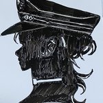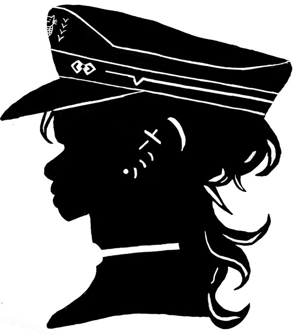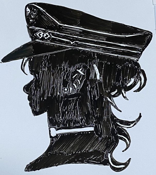 4 14 軍服チグちゃんの影絵(?) 帽子を訂正してみました 帽子の模様やツバなど少し変更🖋 #ニシゾノート 23/03/30 23:44
