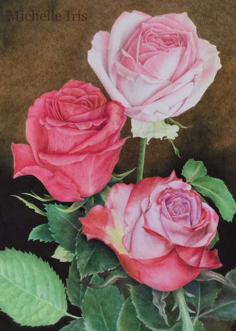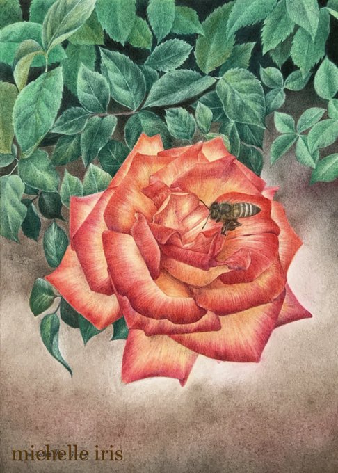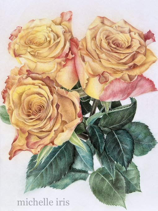 やっとここまで漕ぎ着けました。 また夕方、続きを…。 #薔薇 #色鉛筆画 #イラスト #みんなで楽しむTwitter展覧会 #Rose #colorpencil #illustraion #botanicalart