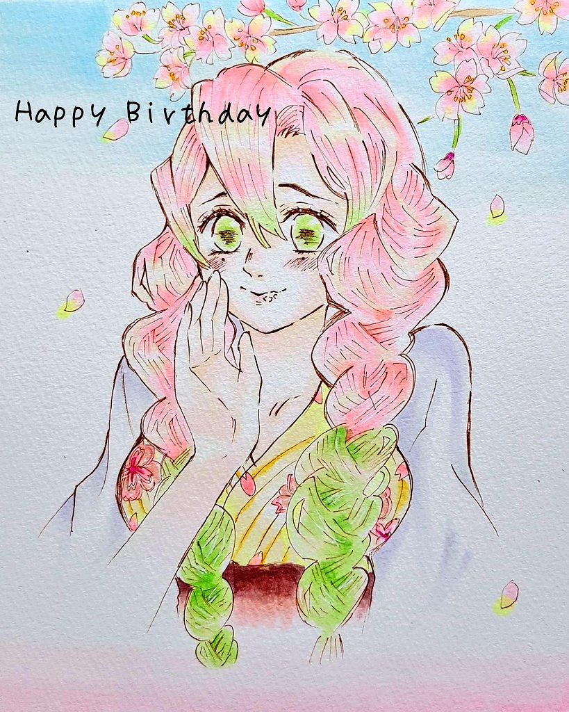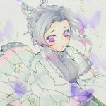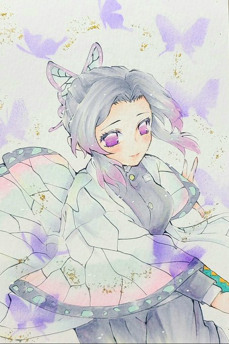 フライングだけど しのぶちゃんHappybirthday❤🦋❤ 美しく強いしのぶちゃんがだいすき❤ アナログコピック 背景の🦋は紙に描いてカッターできりとったやつをコピックエアブラシでしてゴールドのキラキラちらしたよ🥹 #胡蝶しのぶ生誕祭2023 #胡蝶しのぶ誕生祭2023 #鬼滅の刃ファンアート
