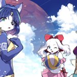 夏コミに出したスタフォ女子水着本でしたー。一枚はゲストの生垣ユキナ( @Namagaki_Yukina )さんのイラストです。 宣伝になりますが、けもケで、よっち様( @kemonoyocchi )のスペース(G-03)で委託販売いたします! #夏が終わりそうだし今年描いた水着絵を貼ろう