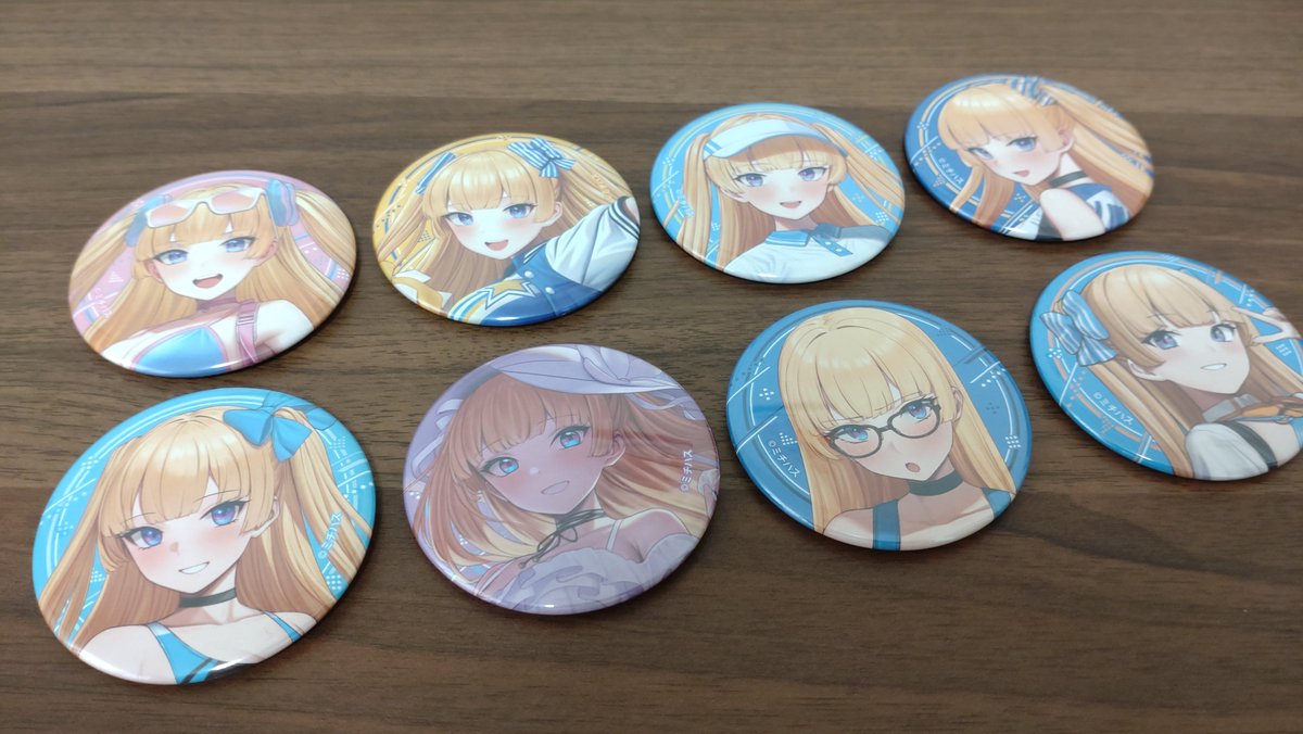 スクラッチのC賞D賞の缶バッジとクリアファイルこんな感じです!どちらも綺麗に印刷して貰えているので並べて楽しんで貰えるものになってるかなと思います!