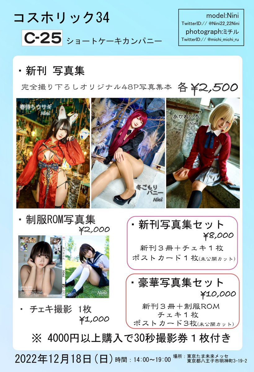 コスホリのお品書き出来ました! 新刊写真集3冊出ます‼︎ 当日はNINIちゃんとC-25でお待ちしてます。 コスホリック34:CH34 12月18日(日)東京たま未来メッセ #コスホリ34 #コスホリック #CH34