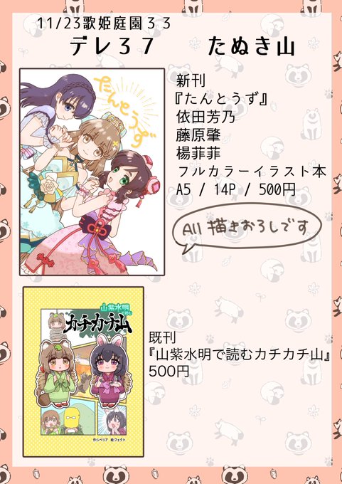 遅くなりましたがお品書きです! 歌姫庭園33 デレ37たぬき山でお待ちしております🦝