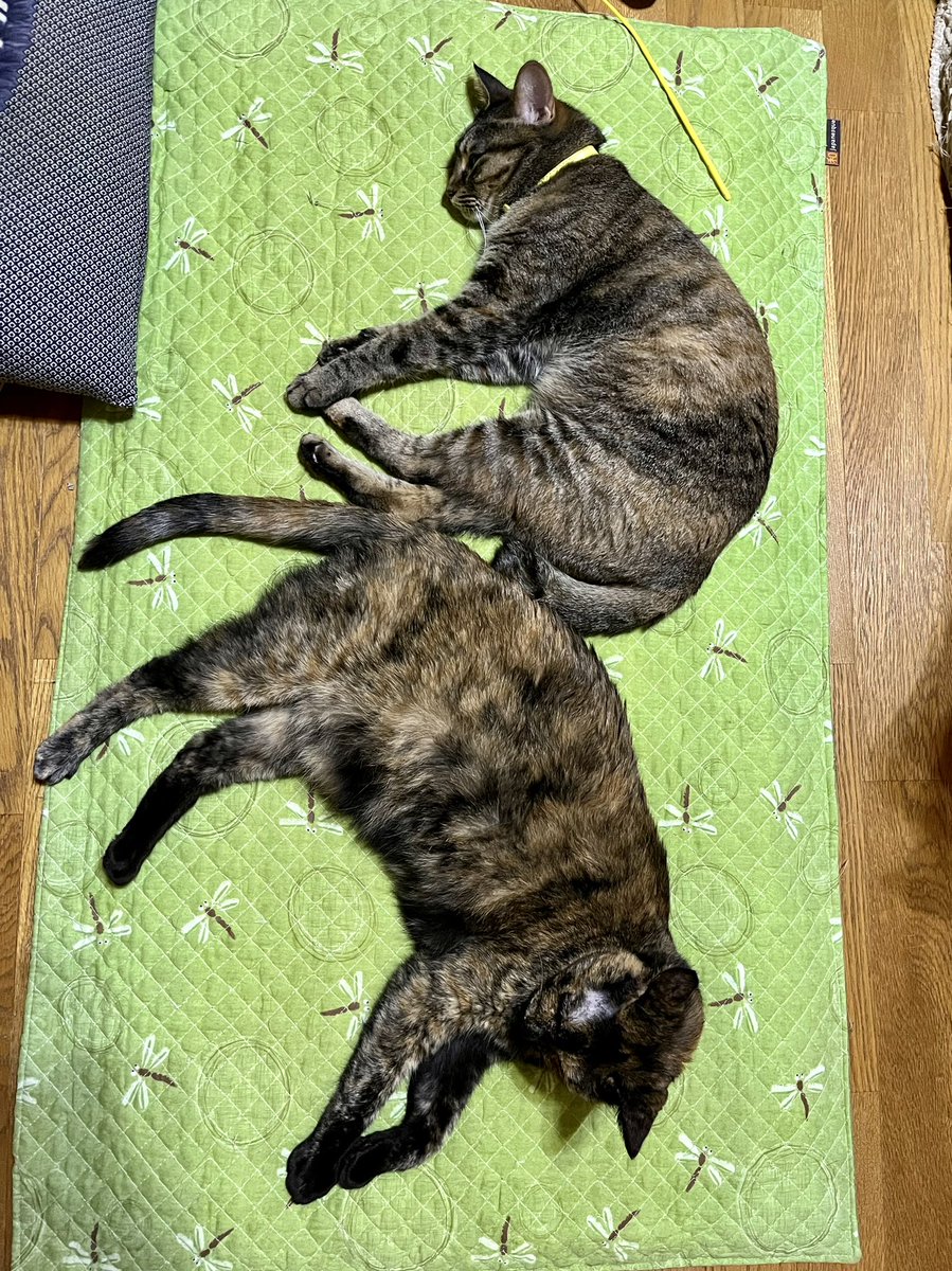 47 271 長座布団を出しているのは、半分を人間に使わせて欲しいからなのですよ。 なのですよ、猫たち? 23/08/07 20:34