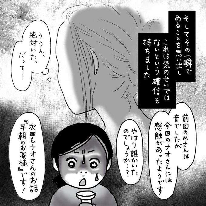 #フォロワーさんのこわ〜い体験談 第2話『ぶつかってごめんね』 (3/3 ) この人(?)はずっと視界に入っていて、むしろ「あー私のほかにも誰かいるな〜心細くないな〜」と思っていたそうです。 俯き気味の、細身で髪の長い女性だったとのことでした。 #怖い話 #漫画が読めるハッシュタグ