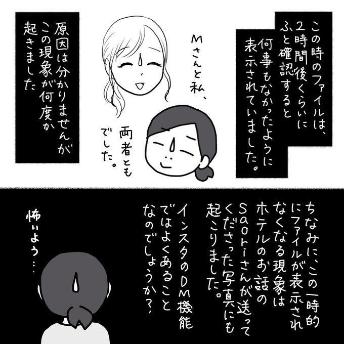 #フォロワーさんのこわ〜い体験談第5話『神様との勝負』番外編/後編 (2/4) 保存期間の問題にしては、一緒に送られた後半わずかの内容は消えていない。 このファイルより前に送られたデータは残っている。 #怖い話 #怖い漫画 #漫画が読めるハッシュタグ