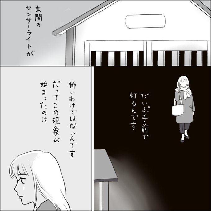 #フォロワーさんのこわ〜い体験談 第9話『センサー』後編 (1/2) 今回はフォロワーみっちゃんさんのエピソードの後編です。 みっちゃんさんの背後に迫る足音は一体…? #怖い話 #怖い漫画 #漫画が読めるハッシュタグ