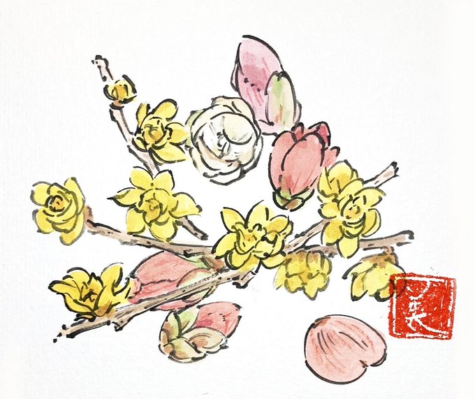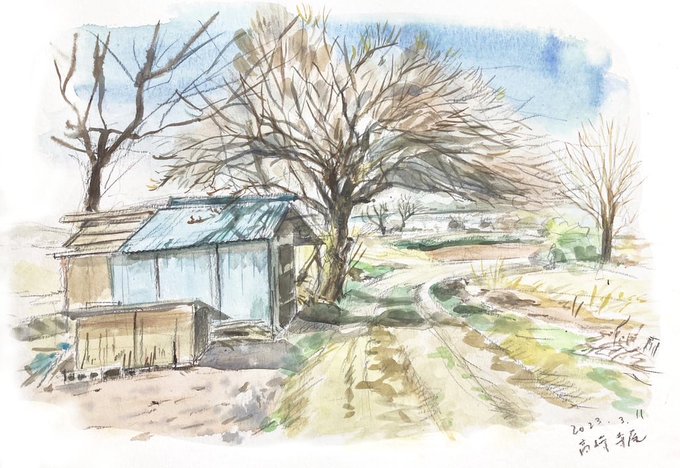 雪。 スキャナーを買ったんですね。(ずっと携帯で撮ってた)これで補正が楽ちんですが、やっぱり原本の感じは出ないみたい。 #農山村画 #水彩 #不透明水彩 #watercolor #水彩画 #watercolorpainting #painting