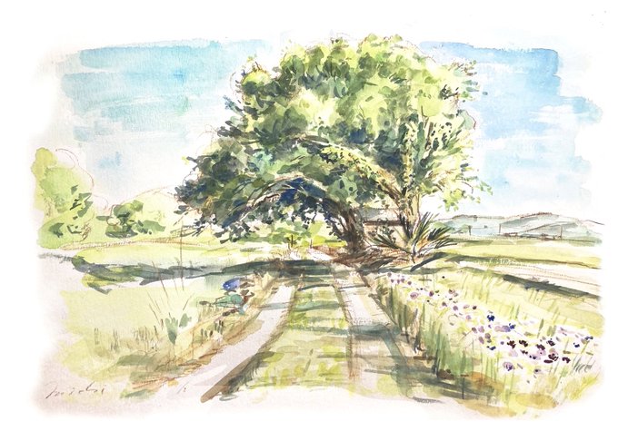 いつもの小道に久しぶりに行ってきた。 しげしげに茂っていた。 #農山村画 #sketch #水彩 #不透明水彩 #watercolor #水彩画 #watercolorpainting #painting