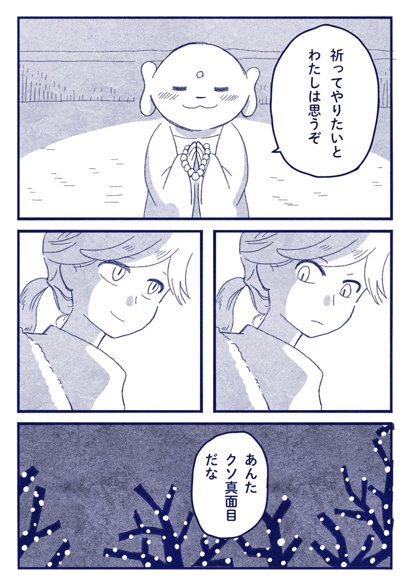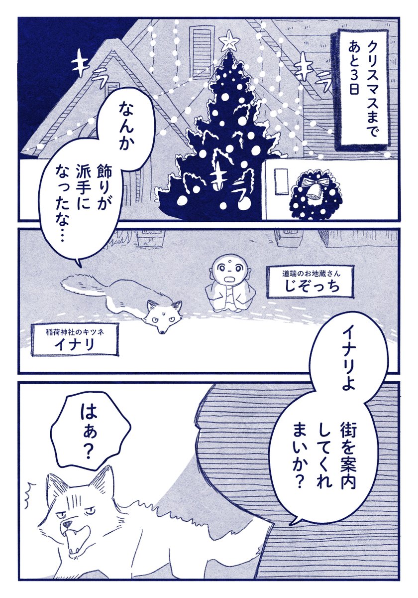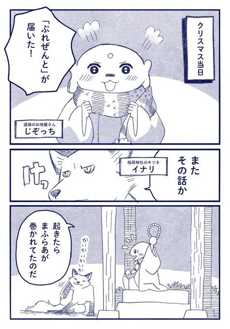 クリスマスが気になるお地蔵さんの話④ いかがでしたか? クリスマスのお話はこれでおしまいです🎄 気が向いたらまたこの2人を描いてみたいと思います🦊👶 24日にまとめ投稿します🎅 #漫画が読めるハッシュタグ