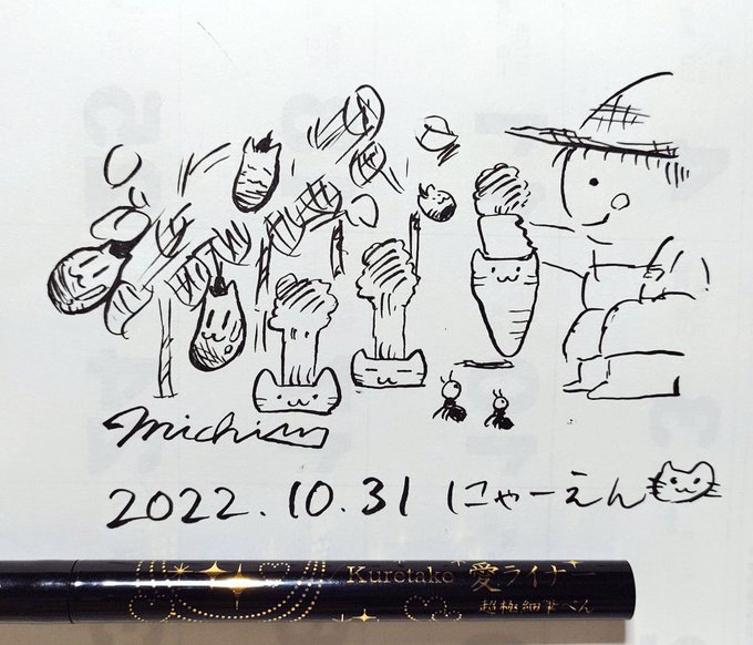 10月31日 農園 「にゃーえん」 #Inktober_PerfectChallenge #kuretake_inktober2022 #inktober #inktober2022 呉竹愛ライナー、カレンダー裏紙。