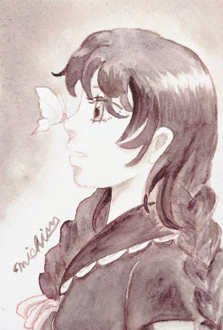 #ルーレットで絵を描こう 1、天使×葉っぱ×茶色 「愛しき朽ち葉」 呉竹MANGAKA、水彩絵の具。 紙はウォーターフォードナチュラル中目。 落ち葉の美しさも堕ちていく… 少し堕天使的な絵になりました。 (わたしらしいですね😅) 葉っぱはサターンレッドを下地に、慣れた茶色をいくつか滲ませました🍂