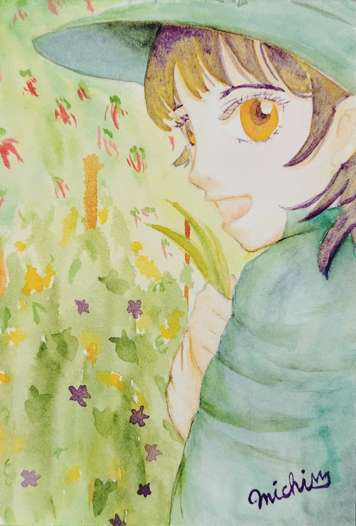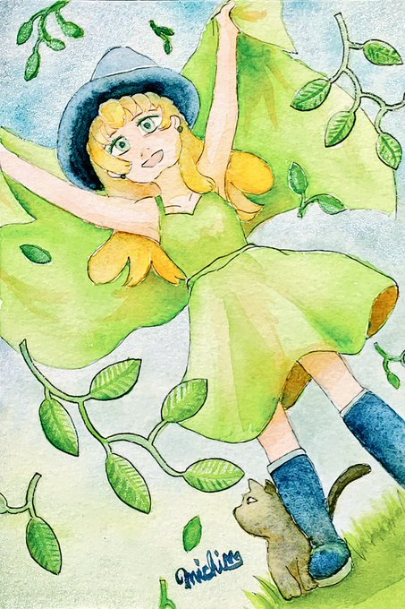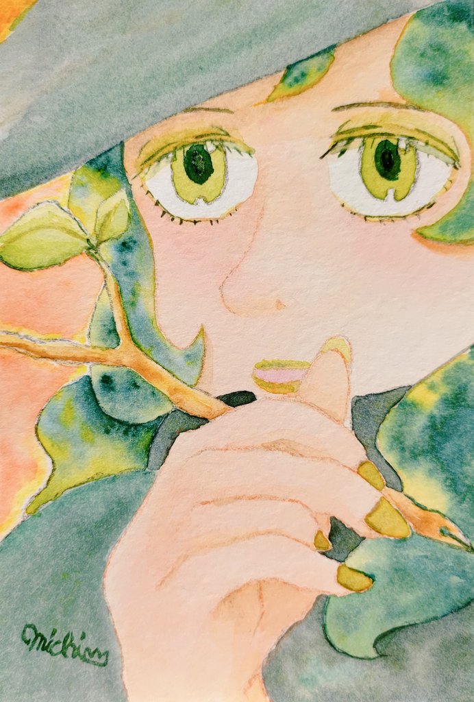 #ルーレットで絵を描こう 1、天使×葉っぱ×茶色 「緑色に憧れる」 呉竹MANGAKA、水彩絵の具。 紙はウォーターフォードナチュラル中目。 着彩したら天使というより鳥の化身みたいになっちゃってますが、かろうじて線画時点で頭の輪っかを描いていたのが幸いにも天使感を出してくれました😅