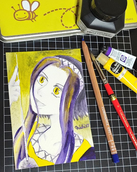 「薫子」 カラーグラファイト鉛筆のみ。 紙は、ヴィフアール水彩紙(荒目) わかりづらいですが、和装(寝間着)の薫子さんです。湯上がりで髪を下ろした姿が艶めかしいイイオンナです💋 一発描きなので緊張しました💦 ワンドロではなくハーフドロ(約30分)に。 #イイオンナ展開催やったーワンドロ