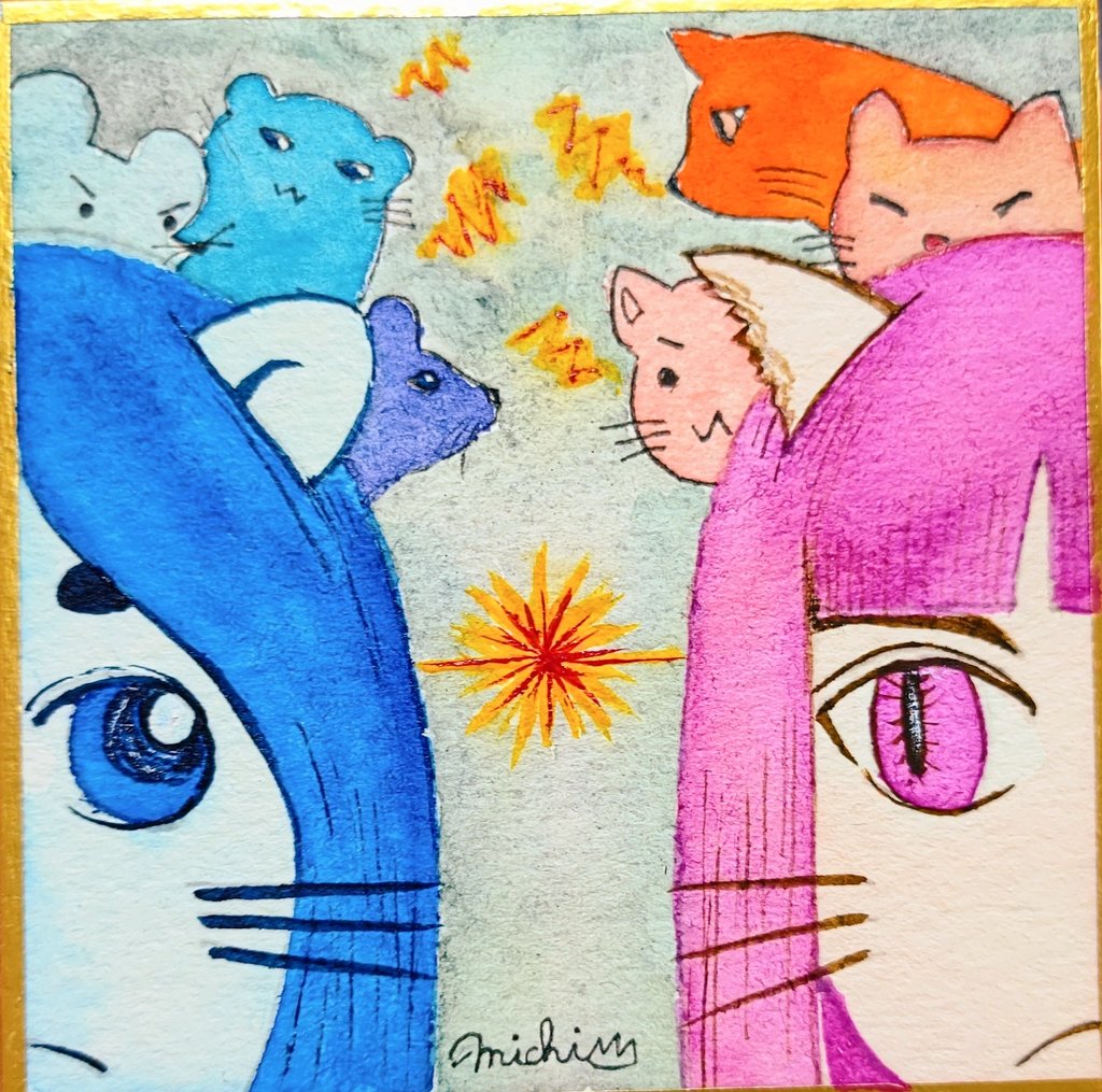 10月26日 エゴ、うぬぼれ 「ニャゴなにゃこ」 #Inktober_PerfectChallenge #kuretake_inktober2022 #inktober #inktober2022 呉竹万年毛筆、納品書裏紙。