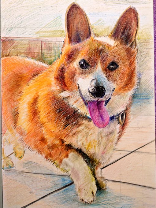 #音海はる さんの個展を観て色鉛筆画が描きたくなり、在りし日の愛犬を描きました! #色鉛筆画