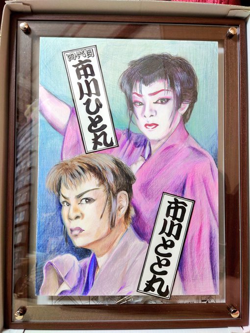 お風呂カフェびわこ座に母を連れて来ています。 大衆演劇は、市川ひと丸劇団の座長の弟、とと丸君の誕生日公演です。 兄弟のイラストを色鉛筆で描きました。 本人に渡せたので公開します。 #色鉛筆画 #市川ひと丸劇団 #市川ひと丸 #市川とと丸