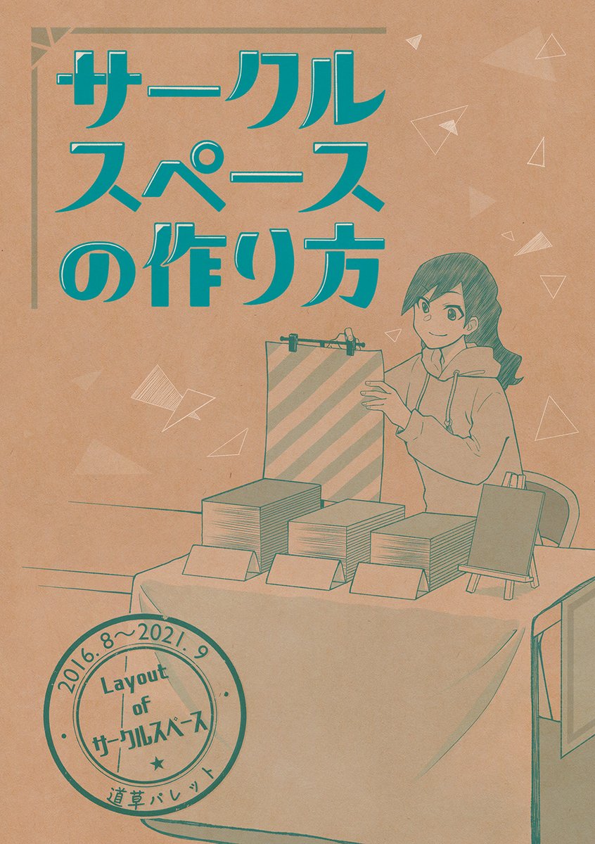 【新刊サンプル】 11/3(祝) #おもしろ同人誌バザール にて発行の「サークルスペースの作り方」です。 サークル活動開始時(本1種類)から、頒布物が11種類の時までの、設営したスペースのイラストを描きました。 A5/20ページ/500円 スペース『も-33』道草パレット ※イベント後boothにて通販予定。