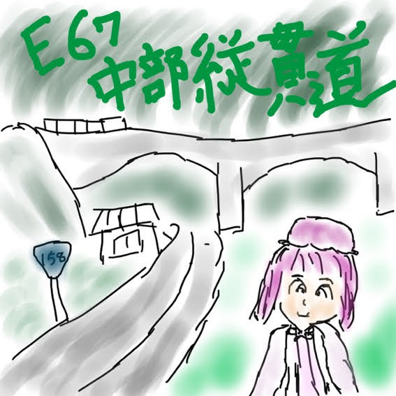 E1 東名高速道路 大井川焼津藤枝スマートICと幽々子さま! 大井川鉄道のSLも描いたよ!