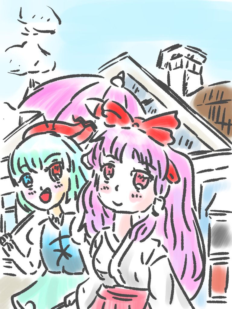 2枚目は小傘ちゃんとしらとりの郷羽曳野! また現地(しらとりの郷)の駐車場で描いたよー!