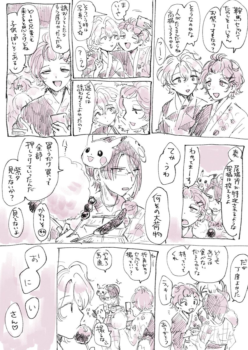 遊ぶ前で終わっちゃった!!なんとか全員入れました!!お題ありがとうございました!!⚡️> お祭りで遊んでるフウライの皆さん(全員じゃなくても大丈夫です…!)お願いします #odaibako_michiru_829 odaibako.net/detail/request…