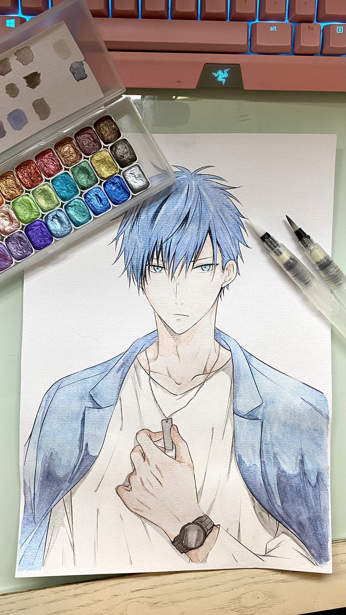 After ~3 hours, I’m almost done! Coloured in @961_masashi ‘s lineart of Ritsuka using shimmery watercolours ☺️💕 後ちょっとで完成するの立夏!!961さんのシック立夏を色塗りしてみた💕キラキラの水彩です✨ 本当に楽しかった☺️☺️ >> ユウナもお気に入りみたいだねww #ギヴン #水彩