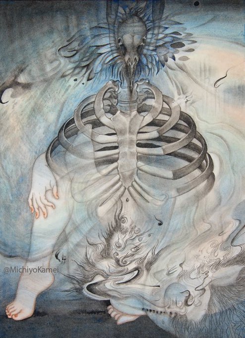 できたかな~ 仕上がる直前の加速は絵からの要請。絵の望むように墨をおくだけ。ぶっ飛んで、描きながら「うわ、やば❣️」って言っちゃたりする笑 #painting #fineart #contemporaryart #artwork #Arte #art #artists #anatomy #humanbody #Blackandwhite #dessin #drawing #ArtistOnTwitter #sumie