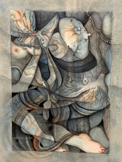できた😀 展示は年明けの予定。本画部分はサムホール。年内他にやりたいことがあり前倒し制作,ここで一区切り。ああでも本心はずっと描いていたい。魔法のような絵の世界が大好きだ。 #painting #fineart #contemporaryart #artwork #Arte #art #artists #humanbody #dessin #drawing #ArtistOnTwitter