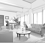 今年初のカラー背景です。 完成→線画(+ベタ質感)→線画 #背景 #イラスト