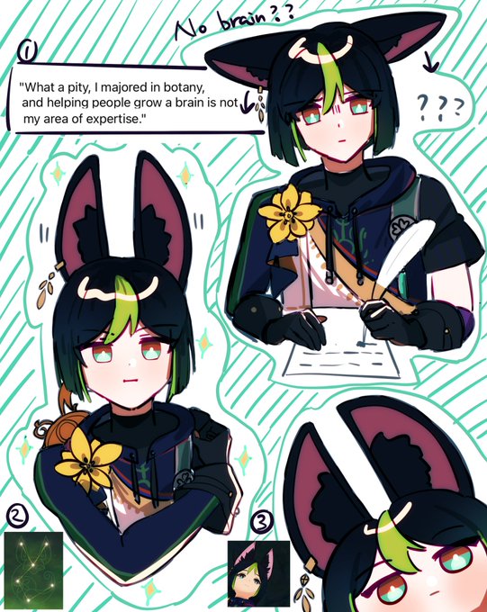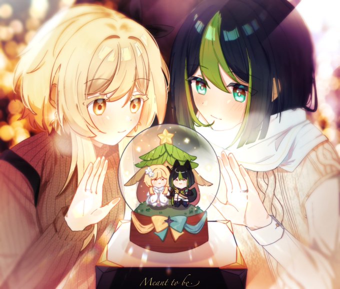 Meant to be. “Tighnari, take a look! The chibi looks like you but having furry ears and tail!” “And the one next to it looks like you too, Lumine.” #ティナリ生誕祭2022 #genshinimpact #tighlumi #Narilumi #Lumine #Tighnari