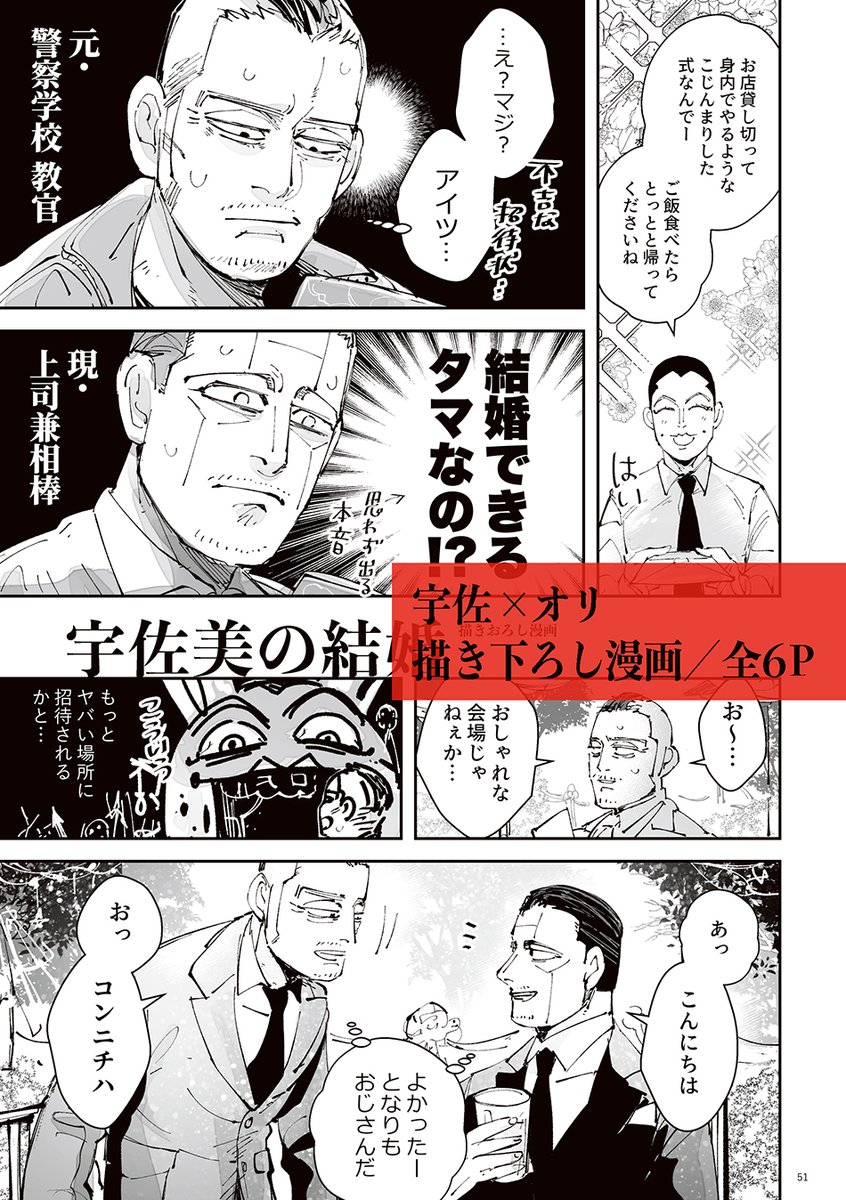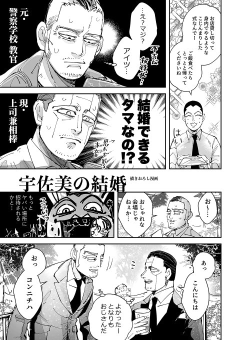 脱稿したので6/26は新刊あります。宇佐オリ結婚式のおじさん2人の描き下ろし漫画を描いたよ