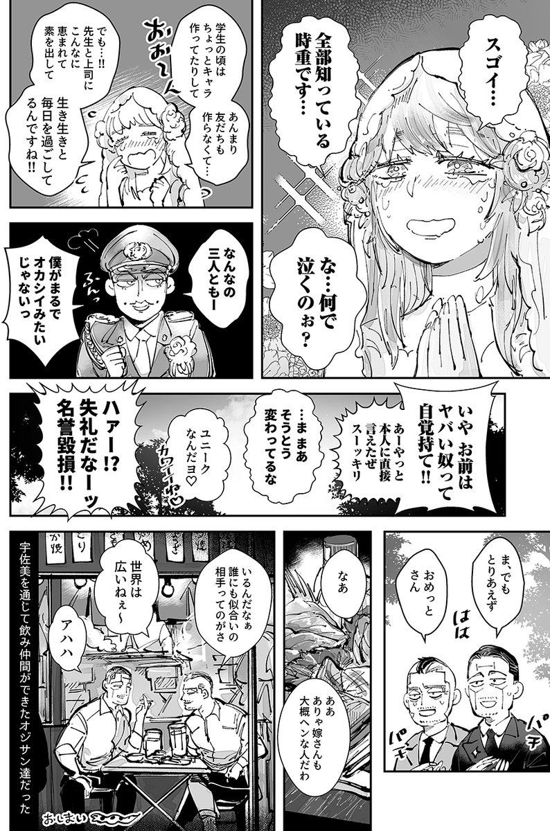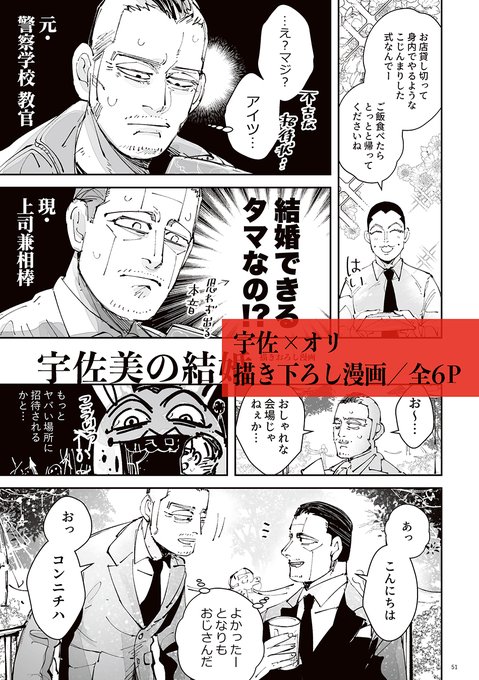 15 130 脱稿したので6/26は新刊あります。宇佐オリ結婚式のおじさん2人の描き下ろし漫画を描いたよ 22/06/20 21:45