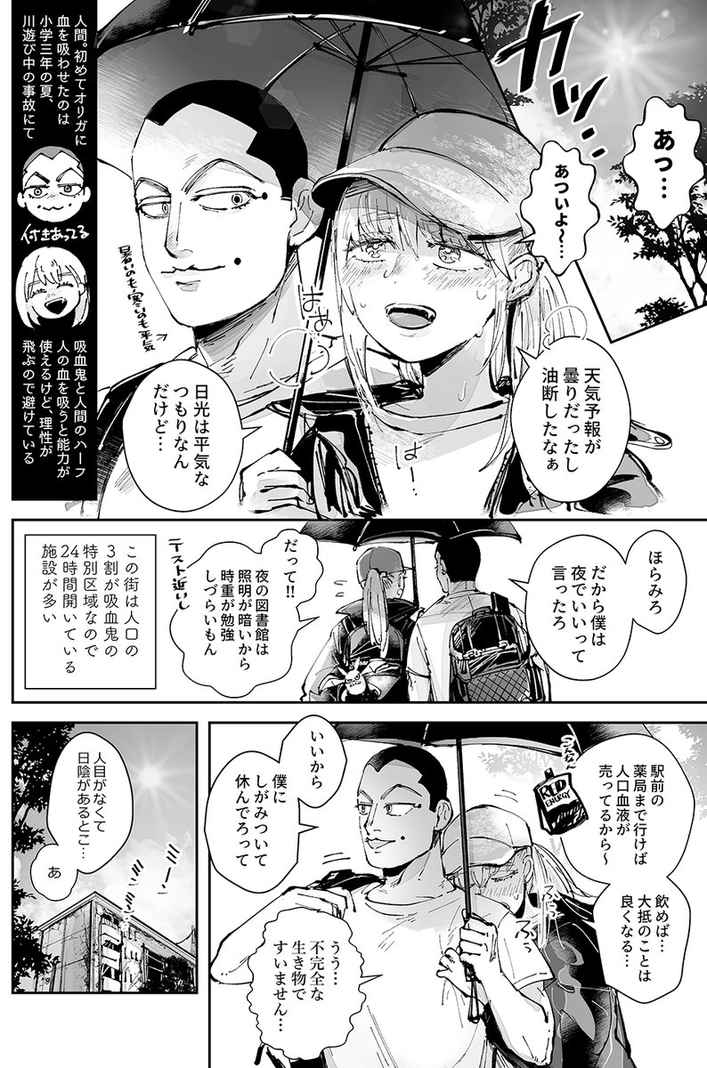 54 572 人間✕吸血鬼の時オリがいちゃつくだけのパロ漫画 1/2 ウサミとオリガが幼馴染のド捏造漫画です。吸血等あるので苦手な方注意 22/08/31 04:26