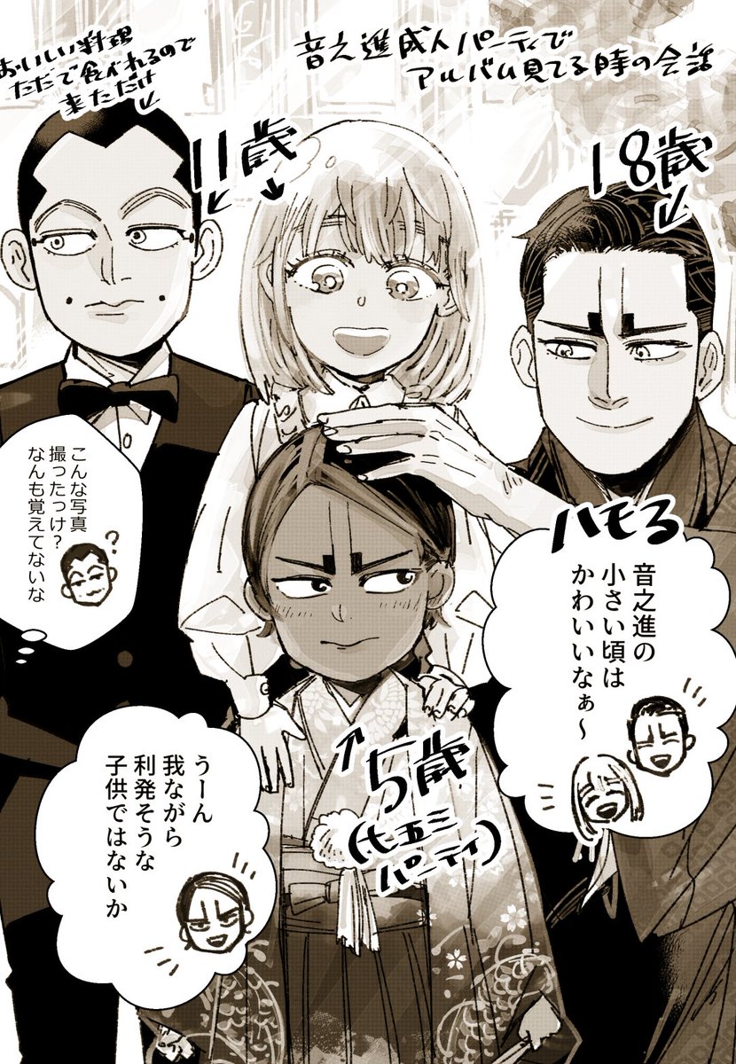 11 75 エアスケブお題「現パロ時オリ世界線のウサミと鯉登」 5〜6歳歳が離れてる設定で、鯉父と鶴さんが結構長いこと交流あるので家の行事に家族で呼ばれたりしててほしいという妄想 リクありがとうございました〜! 23/05/16 18:24
