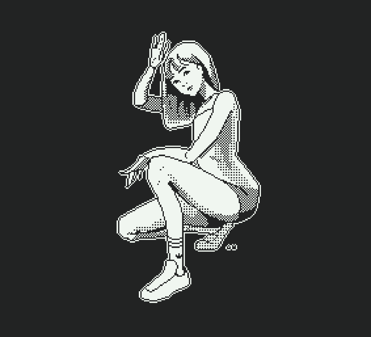 Blearily putting down pixels... here's a studying Yusuke Kozaki's art style... #pixelart #ドット絵 #animegirl