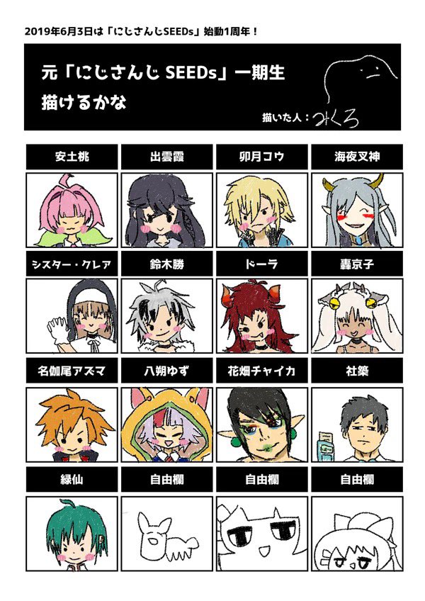 64 314 種。 一周年記念。 #にじしーず描けるかな #にじさんじ #にじさんじSEEDs #あずま絵 #社築納品物 #お花畑青空大写生大会 #緑仙はやく見ろ #漆黒の水鏡 #絵画コウ #ももちゃんあーと #ゆずの朔品 #描いたよクレアさん #クリエイツ轟京子 #出雲墨絵 #絵馬絵 #ドーラの宝物庫 19/06/03 00:01