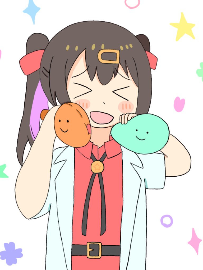 無事確保!!した記念に描きました。 こんなにかわいいぬいぐるみを前にすれば、自然と頬が緩むというもの… 他のみんなのぬいぐるみも出て欲しいなぁ #おにまい #おにまいお絵かき