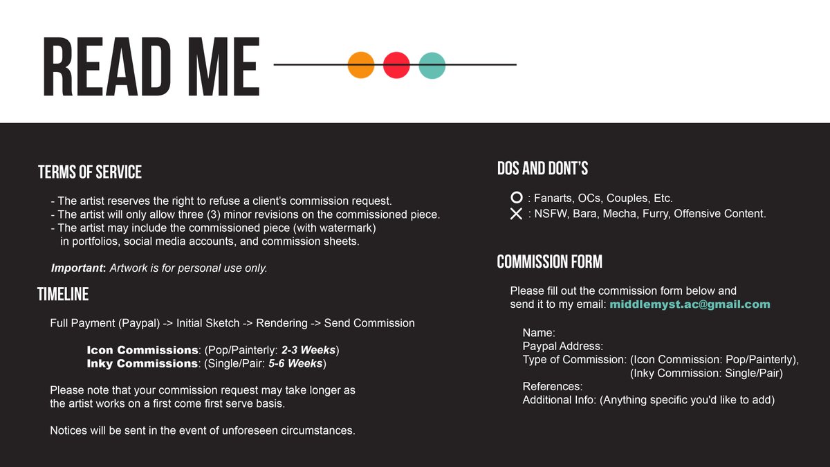‼️ COMMISSIONS: OPEN‼️ Hello! I'm opening commissions to earn some more $$$ before classes start for me. RTs are highly appreciated! 😊👉👈 Please do read my notes and send me an email at 💌 middlemyst.ac@gmail.com if you're interested! #ArtPH #CommissionsOpen #OpenCommissions