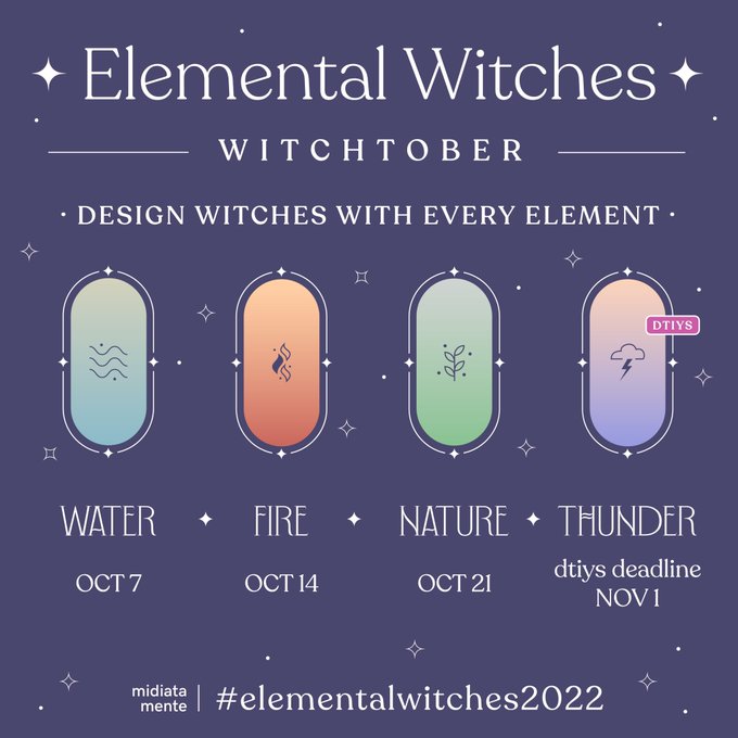 hola 🔮✨🌿 he hecho lista para este #Inktober ! va sobre brujas + elementos y además he hecho nuevo #dtiys ✨⚡️ #witchtober #drawthisinyourstyle